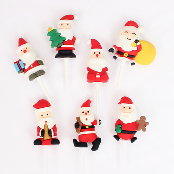 Soft Plastic Christmas Cake Decoration Insert Santa Claus Snowman Deer Christmas Tree Cake Decoration Plug-in Ornaments