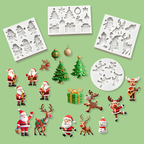 Nuevo Molde Original de Copo de Nieve, Alce y Santa Claus para Fondant de Silicona con Forma de Árbol de Navidad, Material de Silicona de Grado Alimenticio