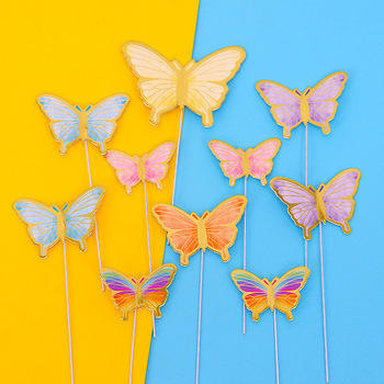 Juego de herramientas de plástico dorado para pastel, con alambre, mariposa