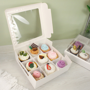 Caja de embalaje de postres de 9 compartimentos, taza de mousse, caja para llevar Magdalenas con tapa elevada, caja de aperitivos de té de la tarde de estilo palaciego 9
