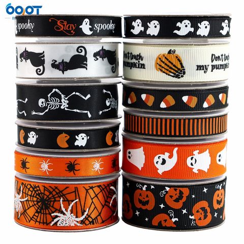 할로윈 리본 DIY 휴일 장식 호박 유령 해골 프레임 블랙 트릭 또는 치료 리본