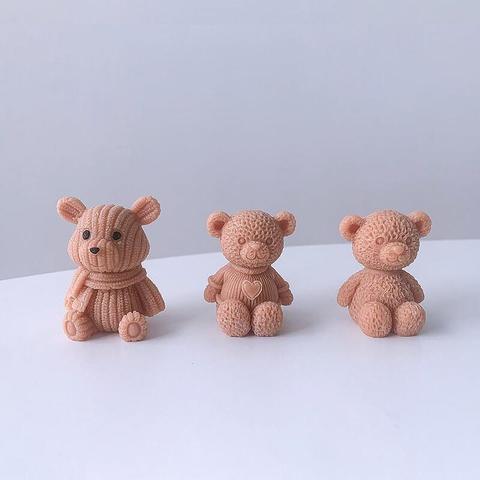 3D Gấu Silicone Khuôn Hương Liệu Nến Dệt Kim Tình Yêu Handmade Tự Làm Thạch Cao Ice Cube Keo Đồ Trang Trí